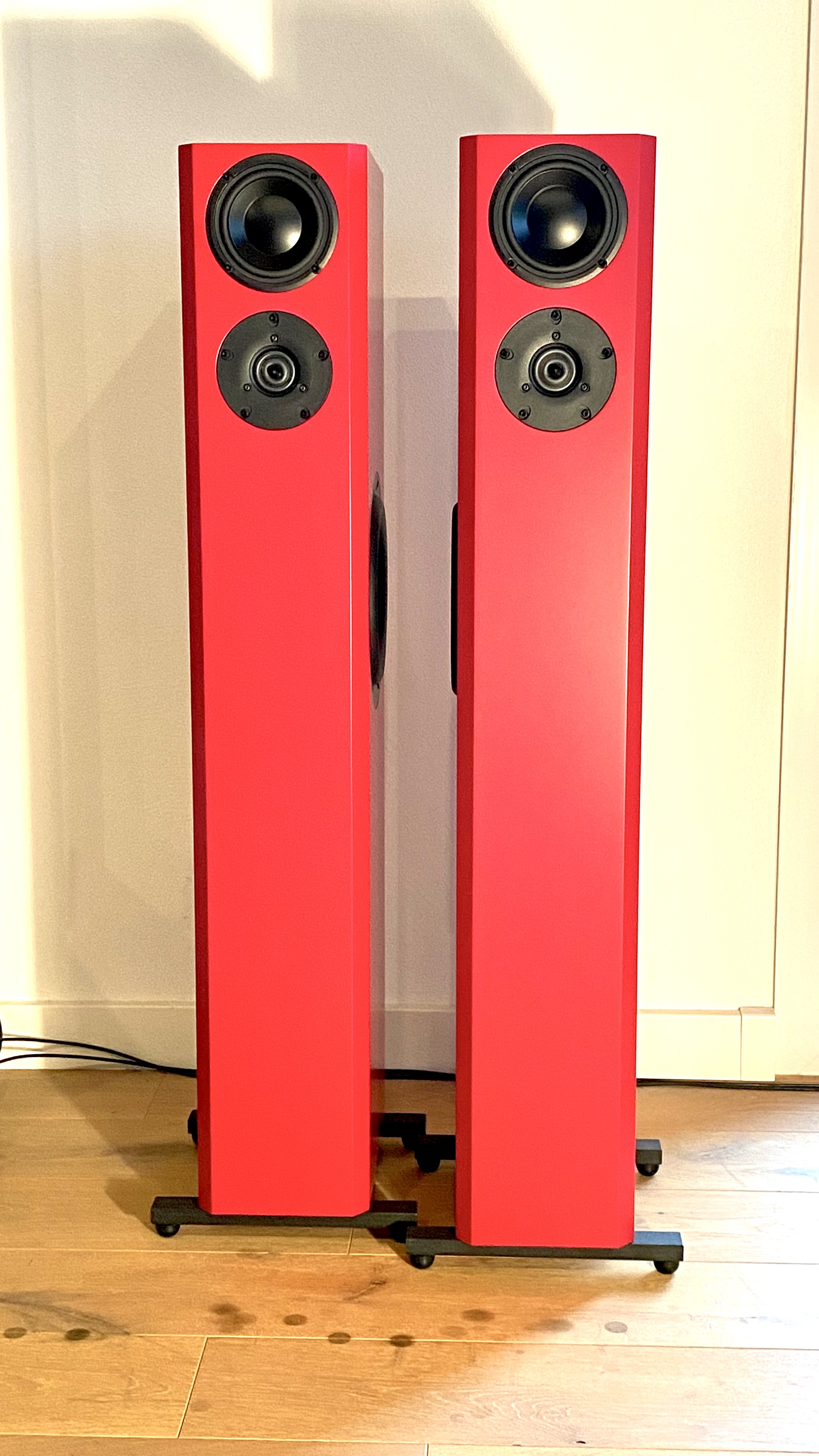 Nach Fertigstellung unserer BoxX, einer All-In-One-Lösung zur Ansteuerung von Mehrwege-Lautsprechern, kam 2024 die Idee auf, einen neuen, kleinen, aber leistungsfähigen Lautsprecher zu bauen. In die Entwicklung sollten alle Erkenntnisse der letzten 14 Jahre einfliessen und die Gestaltung so ausfallen, dass er in jedes Wohnzimmer passt. Als Basstreiber haben wir uns für einen SB Acoustics SB23MFCL45-4 entschieden. Als Mitteltontreiber kommt ein Morel EM 428 zum Zuge und als Hochtöner läuft ein ScanSpeak Ringradiator R2604/832000. Der Bass treibt in ein Bassreflexgehäuse, wobei das Bassreflexrohr nach unten strahlt. Es ist somit von aussen nicht zu sehen. Der Mitteltonkammer haben wir unsere Eigenentwicklung «ResoTune» spendiert. Damit ist die Kammer nicht geschlossen, sondern am hinteren Ende halb transparent offen.